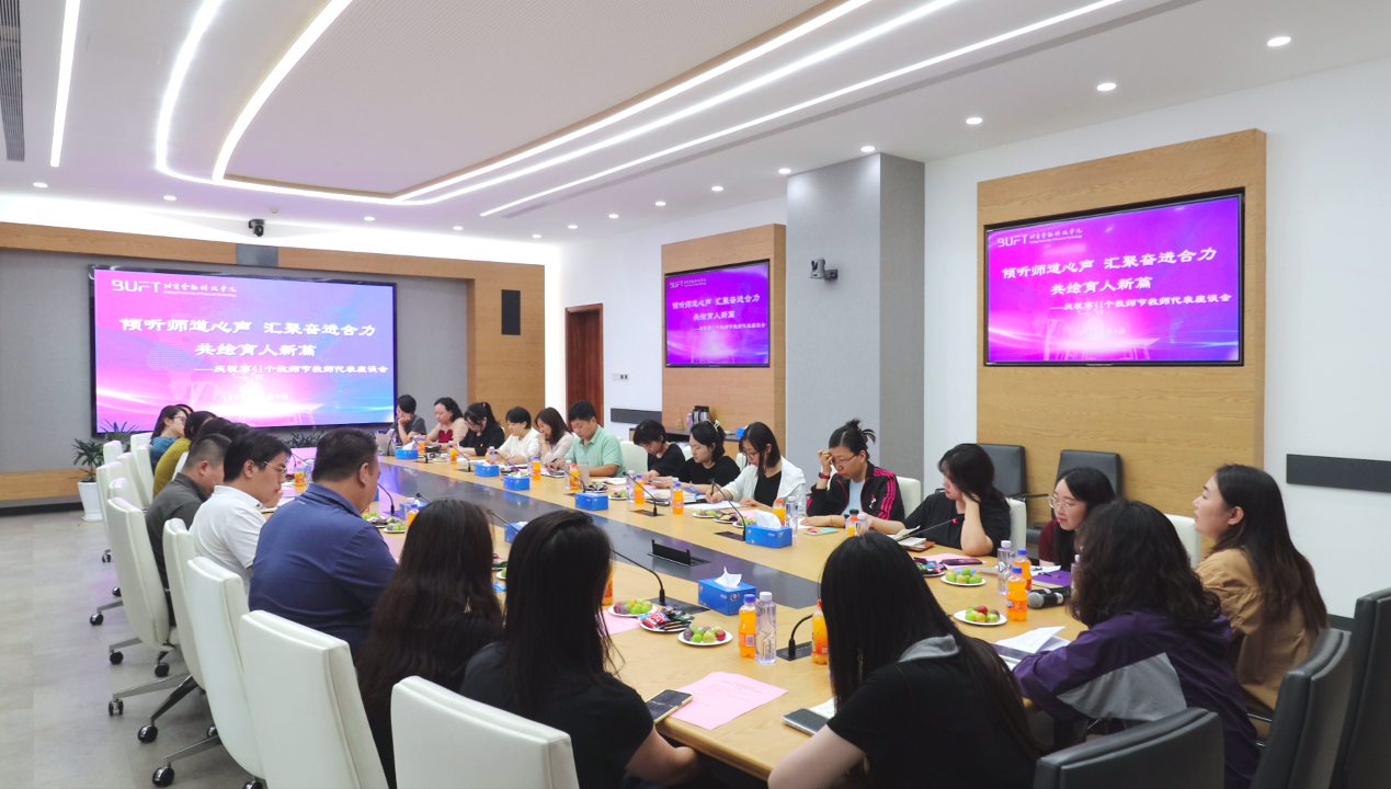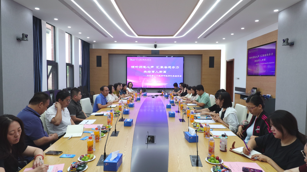 秋韵荡漾,师心如光。在第41个教师节来临之际,为弘扬尊师重教优良传统,凝聚教育发展共识,9月9日下午,我校在温馨融洽的氛围中召开教师代表座谈会。执行理事、校长吕宪栋与来自教学、管理、服务一线的22位教师代表欢聚一堂,共话育人初心,共绘发展新篇。